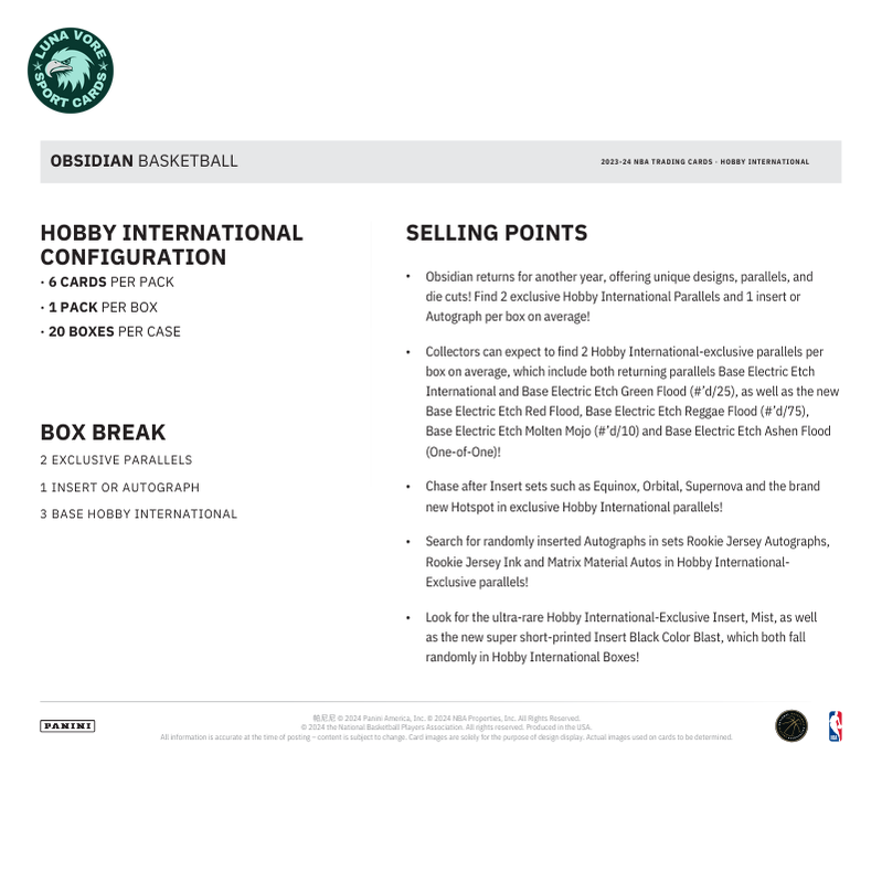 2023/24 Panini Obsidian Basketball International Hobby Box