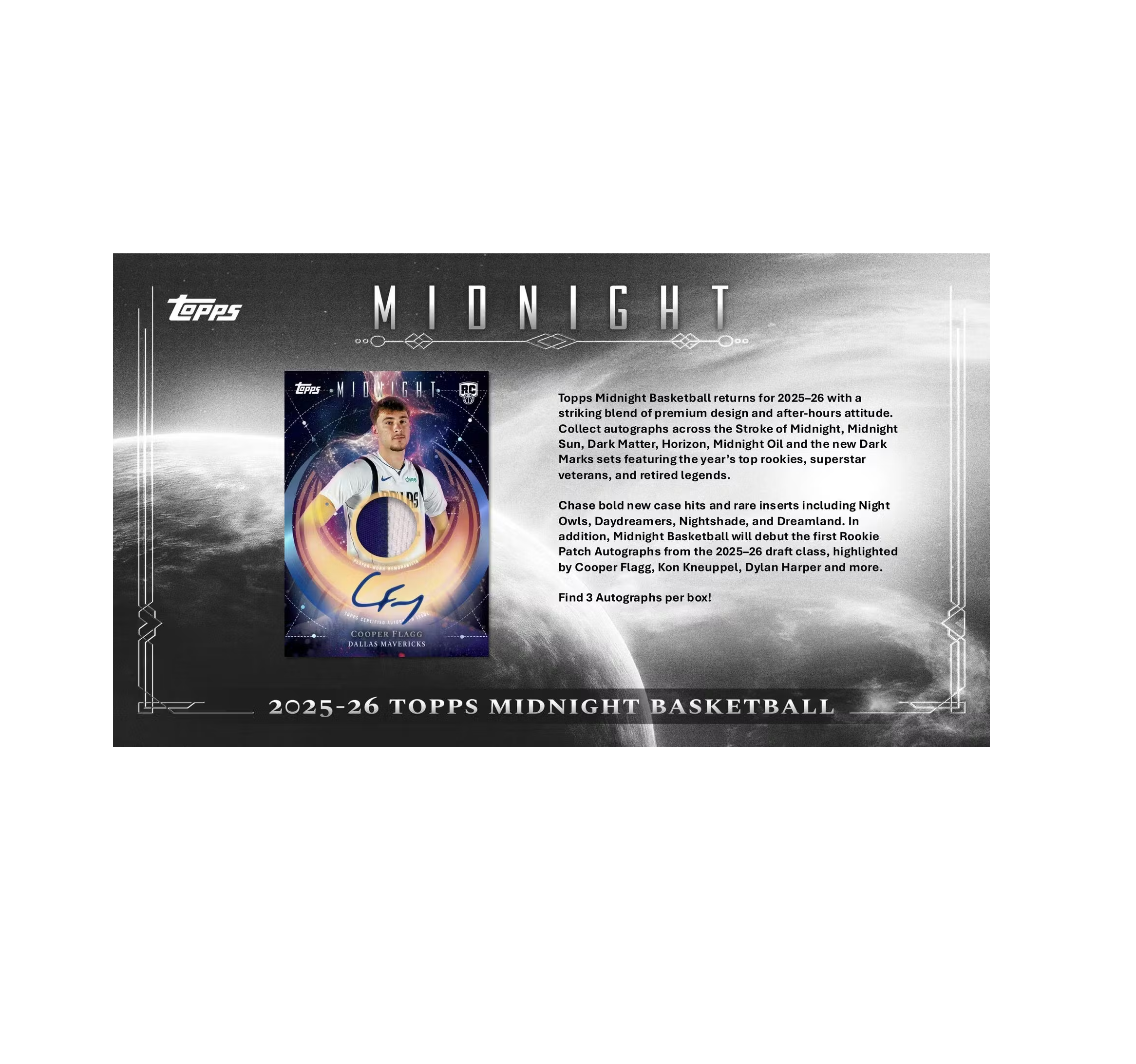 - In addition, Midnight Basketball will debut the first Rookie Patch Autographs from the 2025–26 draft class, highlighted by Cooper Flagg, Kon Kneuppel, Dylan Harper and more!