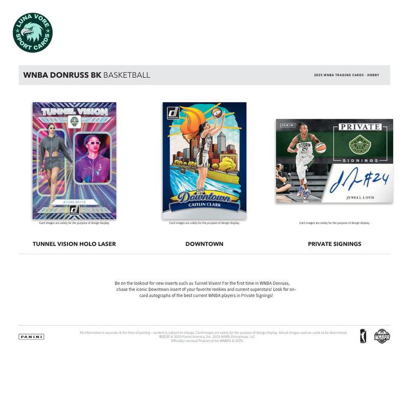 – Be on the lookout for new inserts such as Tunnel Vision! For the first time in WNBA Donruss, chase the iconic Downtown insert of your favorite rookies and current superstars!