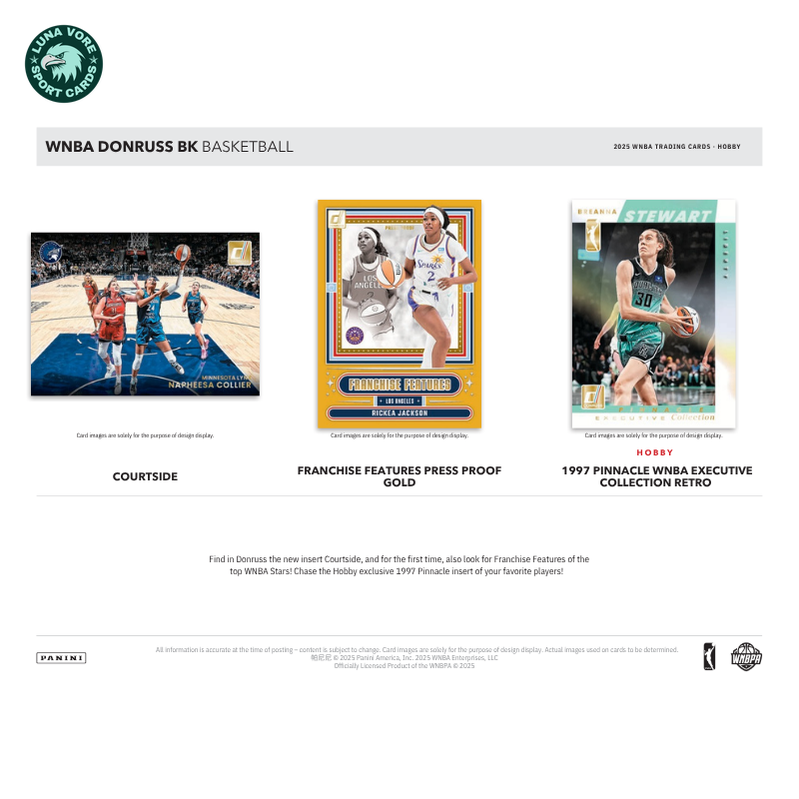 – Find in Donruss the new insert Courtside, and for the first time, also look for Franchise Features of the top WNBA Stars!