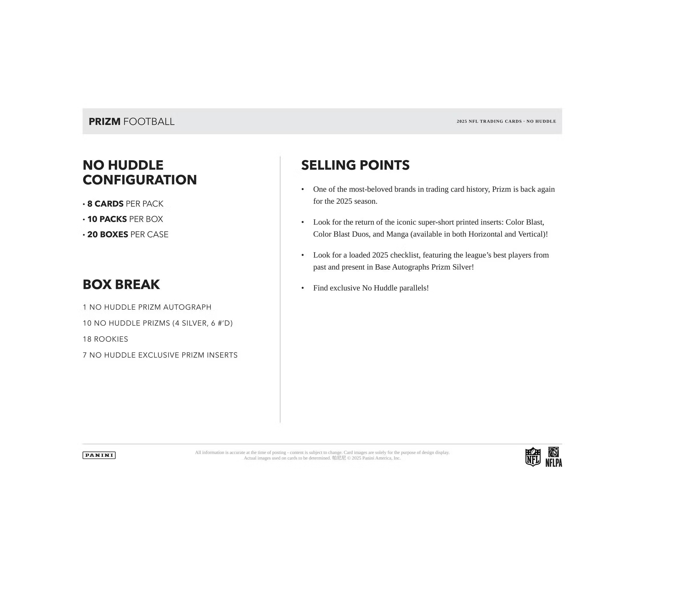 2025 Panini Prizm Football No Huddle Box
