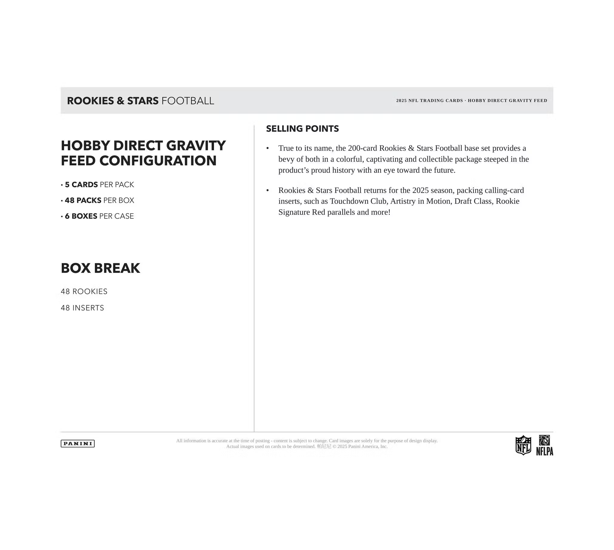 2025 Panini Rookies and Stars Football Gravity Feed 6-Box Case