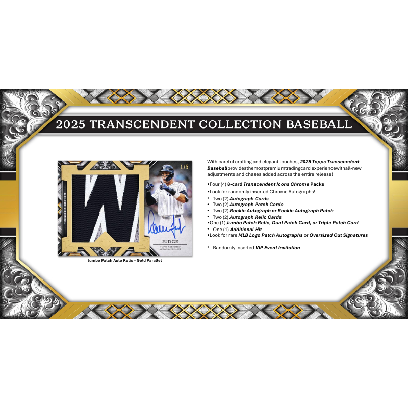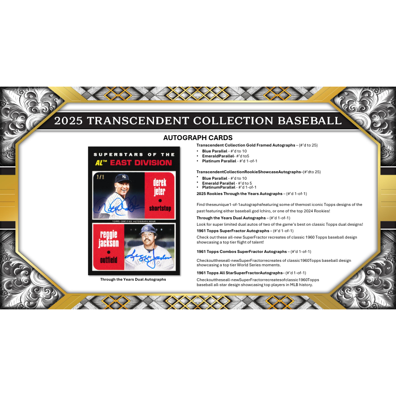 - With careful crafting and elegant touches, 2025 Topps Transcendent Baseball provides the most premium trading card experience with all-new adjustments and chases added across the entire release!
